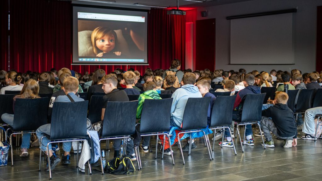 Dann versagte jedoch die Technik nach nur wenigen Minuten und der Film musste neu gestartet werden. Schließlich klappte es dann doch noch, nur konnte der Film aufgrund der Verspätung dann nicht mehr in voller Länge gezeigt werden. Dies soll in den Klassenleiterstunden zeitnah nachgeholt werden. Leider ließen sich auch einige Kinder durch den holprigen Start entmutigen und gingen nach draußen oder unterhielten sich, was dann auch während der Vorführung für Unruhe sorgte.